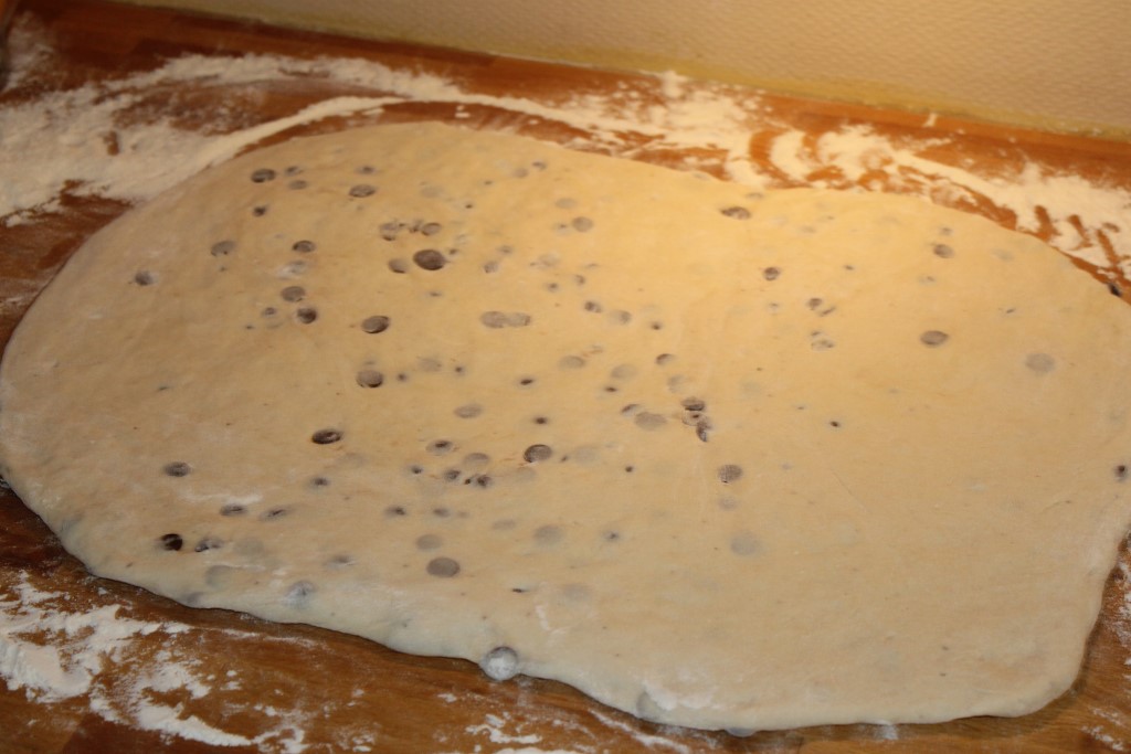 8. Kjevle deigen til en rektangulær leiv i ca 1 cm i tykkelse.