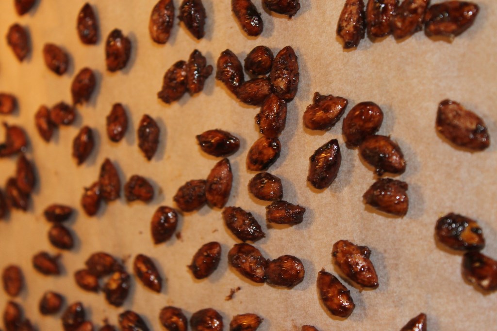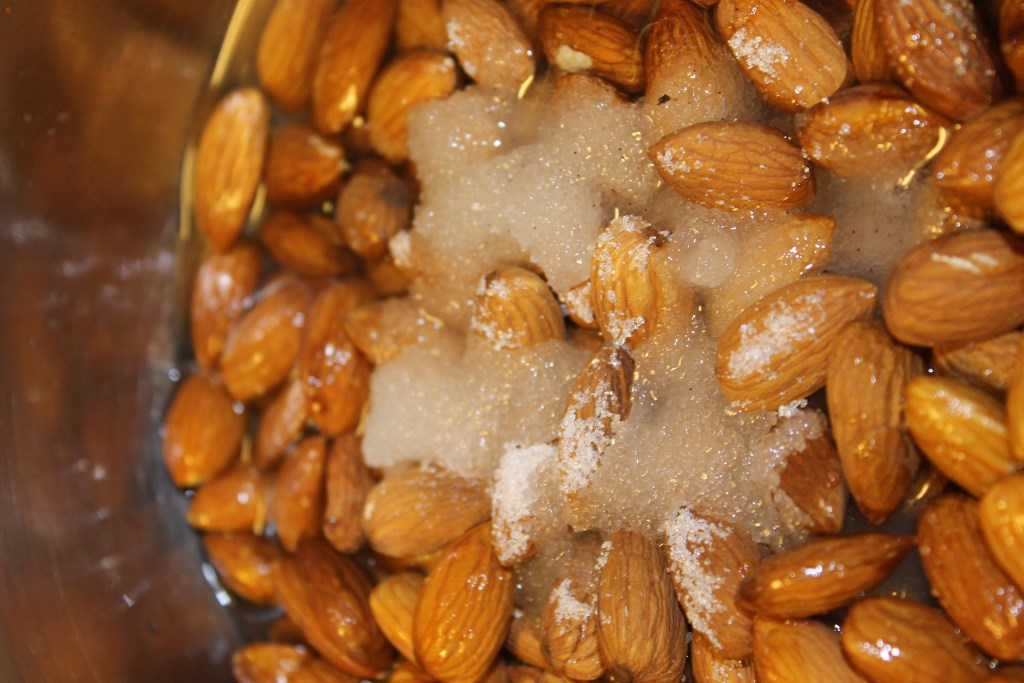 4. Ha over på ett bakepapir og skill mandlene fra hverandre med en gaffel.