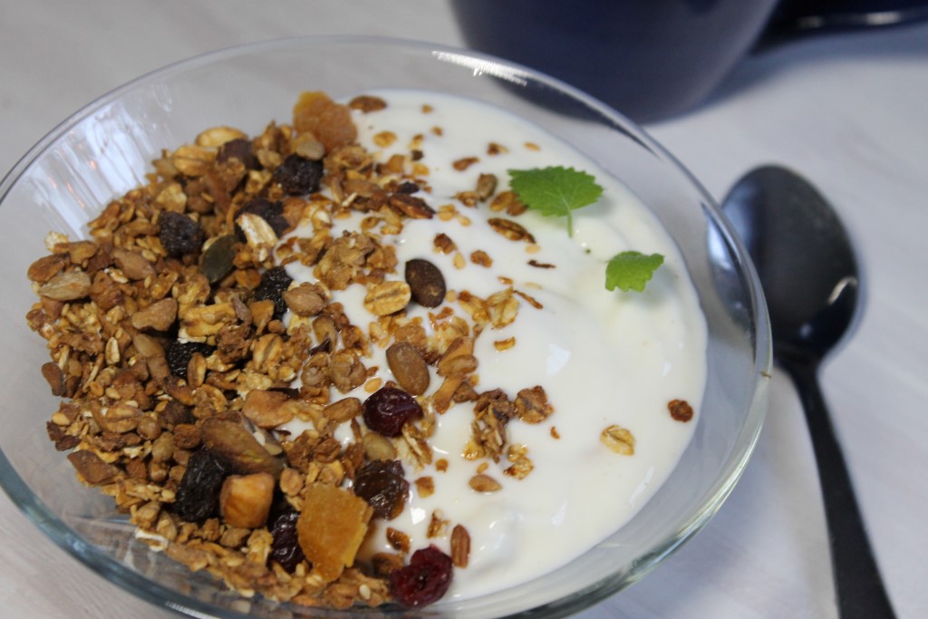 Til denne oppskriften trenger du: 250 g Havregryn (gjerne glutenfrie) 50 g Linfrø 50 g Sesamfrø med skall 50 g Solsikke frø 50 g Hakkede mandler 50 g Hakkede pistasj nøtter 50 g Hakkede valnøtter 30 g Brunt sukker 1 dl Eplemost 1/2 ts Godt salt 1 ss Honning 50 g Tørkede tranebær 50… Fortsett å lese Granola