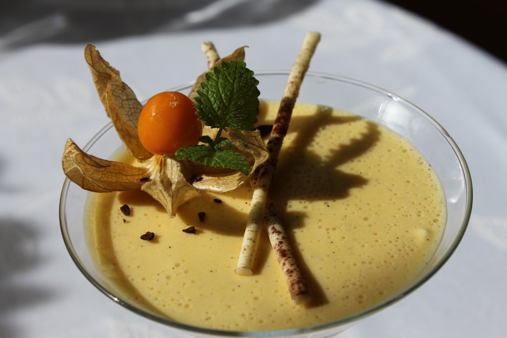 Til denne oppskriften trenger du: 2,5 dl Pasjonsfrukt pure 6 Plater gelatin 80 g Sukker 2, 5 dl Kremfløte 50 g hvit sjokolade (til pynt) litt Bakekakao (til pynt) litt friske bær 1. Legg gelatinplatene i kaldt vann. 2. Kok opp sukker og pasjonsfruktpuree til sukkeret er oppløst. 3. Pisk opp kremfløten. 4. Klem vannet… Fortsett å lese Pasjonsfrukt mousse