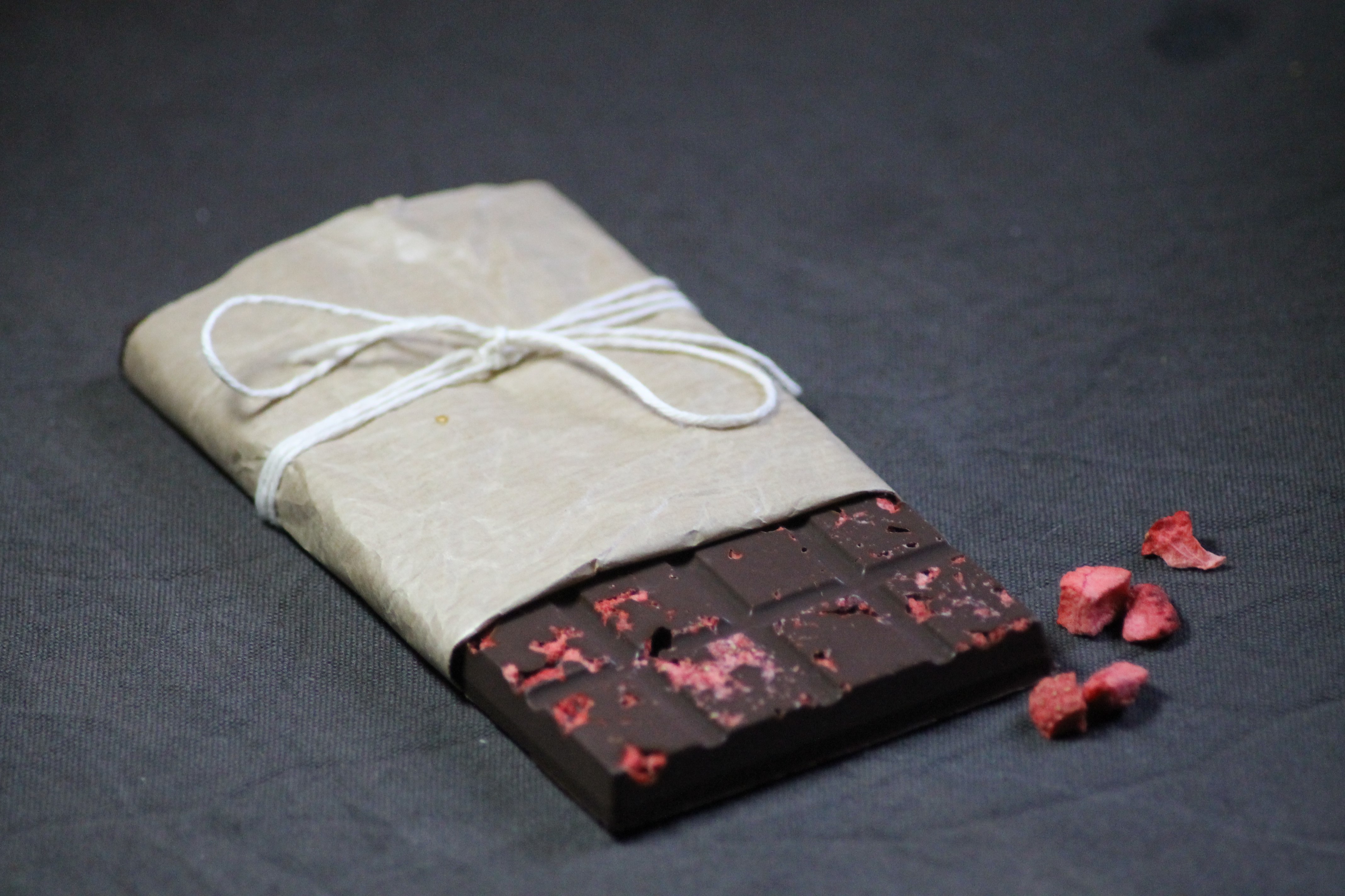 Til denne oppskriften trenger du: Frysetørket jordbær 100 g Sjokolade (Husk att du må temperere sjokoladen eller så kan du bruke en nontemp sjokolade) 100 grams Sjokoladeplateform 1. Smelt/temperer sjokoladen over vannbad. 2. Dryss frysetørket jordbær i sjokoladeplateformen. 3. Fordel sjokoladen i formen og avkjøl til den har stivnet.