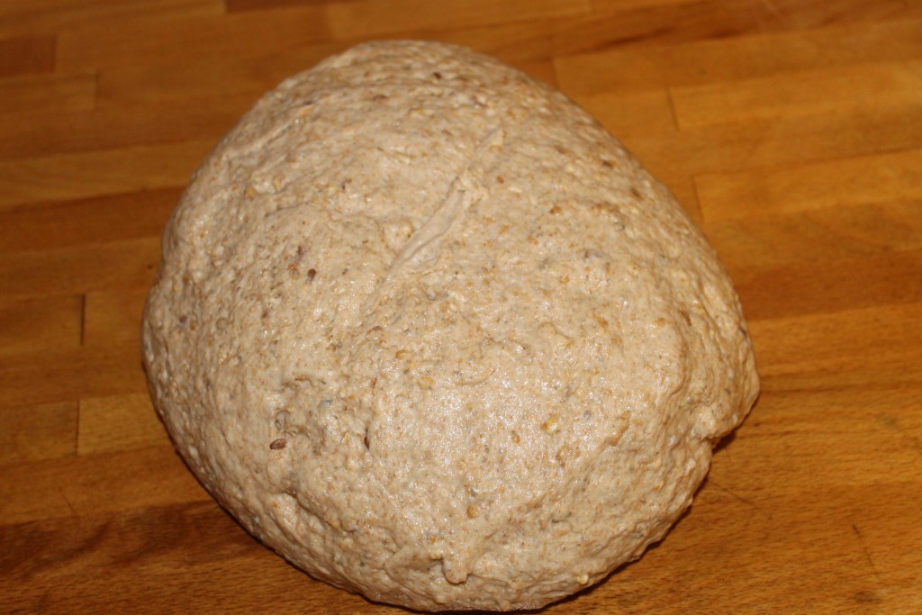 I stedet for vann brukte eg gulerotjuice, hadde ikke byggfrø, helkorn hvete, sitronjuice, kruskakli. Brukte ruggryn, chiafrø, greskarkjerner, hvetekim, havrekli.