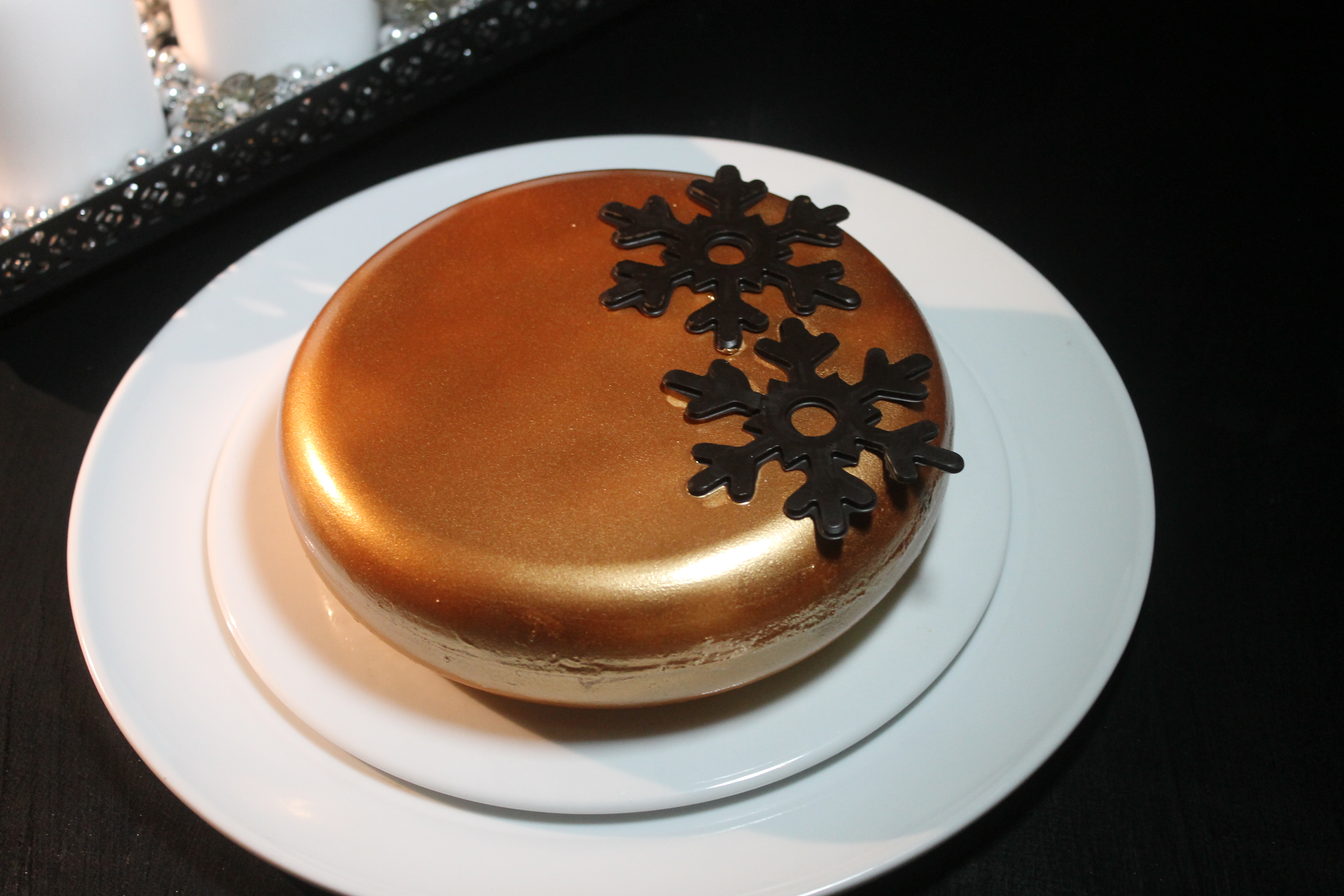 Hva er vel mer jul enn klementiner? og sammen med en deilig brownies bunn blir det en deilig klementinostekake , jeg har valgt og enkelt pynte denne kaken med kakespray som du får tak i på mange butikker som fører bakeutstyr. i tilleg har jeg støpt ett snøfnugg av mørk sjokolade.