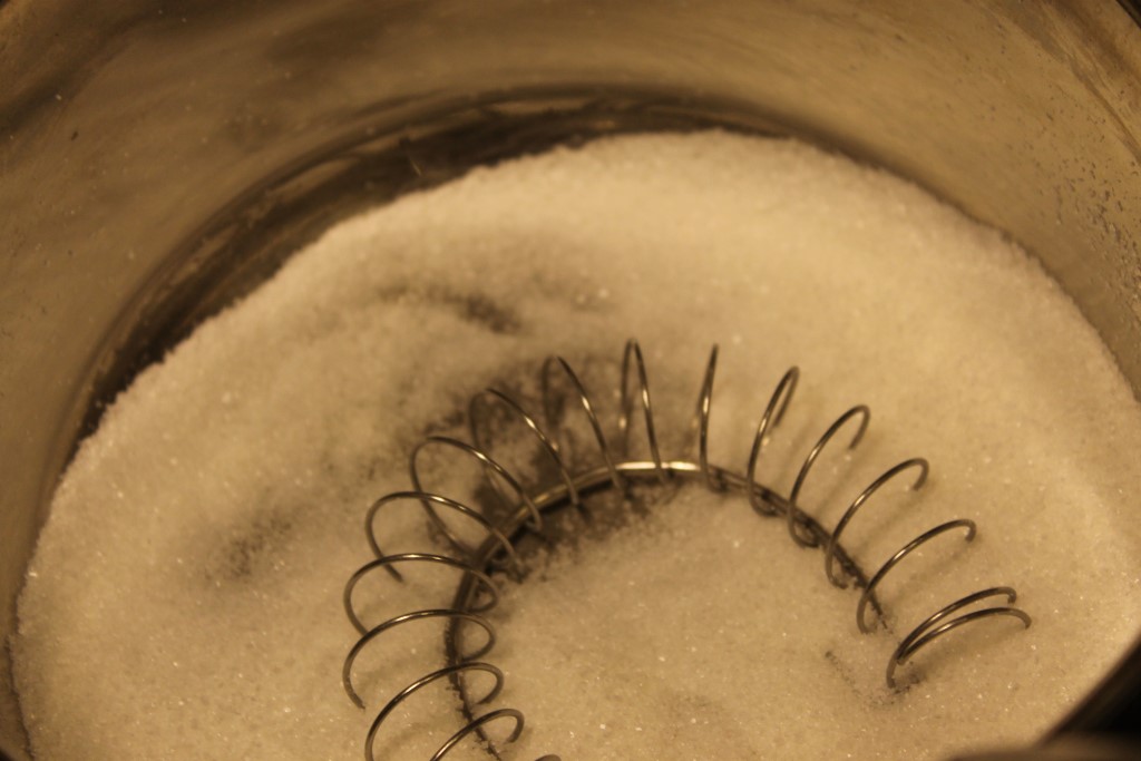 1. Smelt sukkeret til det blir gyllent i en kasserolle.