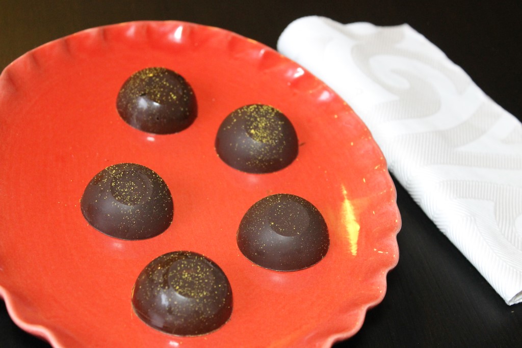 Ferdigstøpte konfektskall (eller du kan støpe selv i konfekt formen ved og temperere sjokolade)